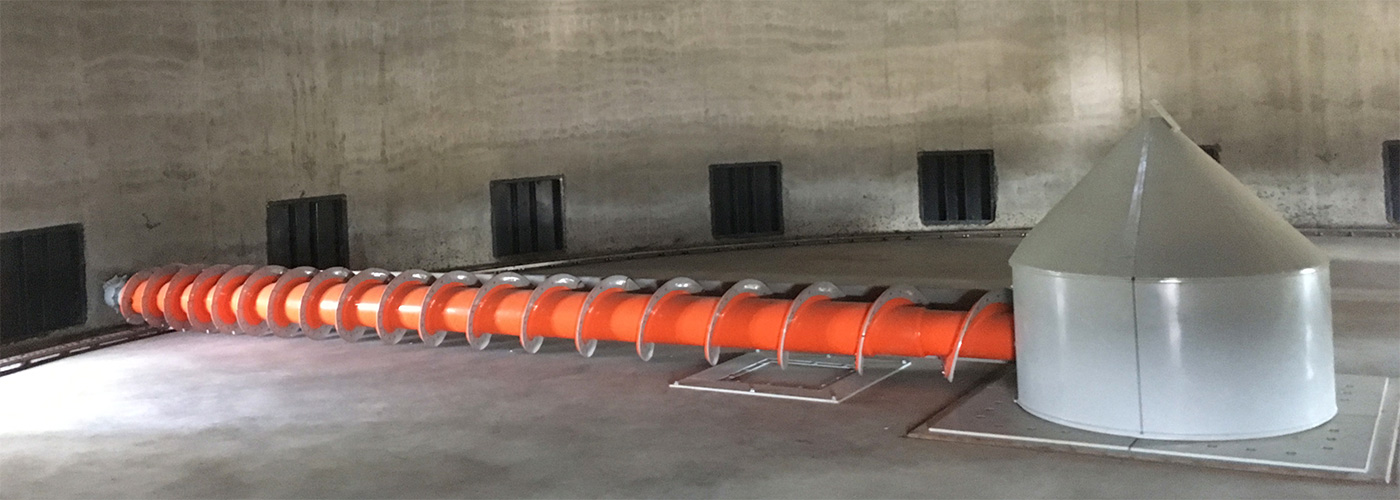 公轉(zhuǎn)行走系統(tǒng)通過特殊的軌道自清裝置結(jié)合鏈輪組件來實現(xiàn),為出倉絞龍切入物料提供動力